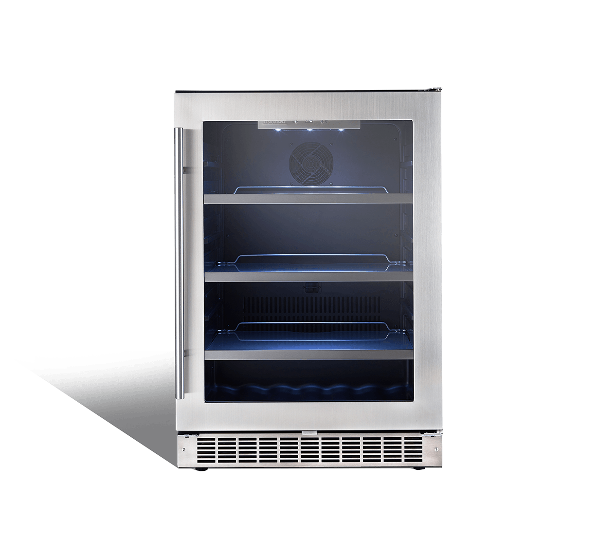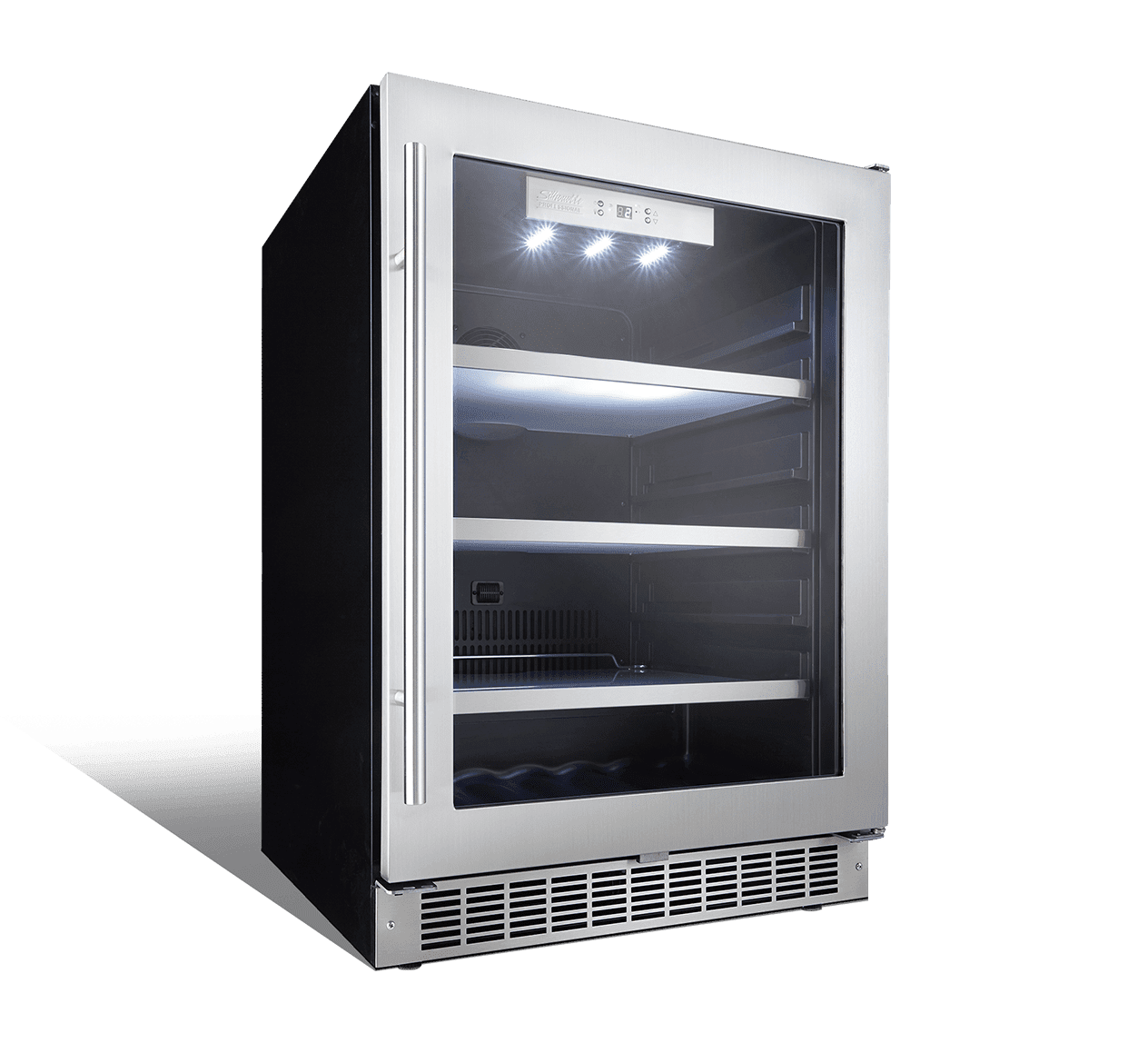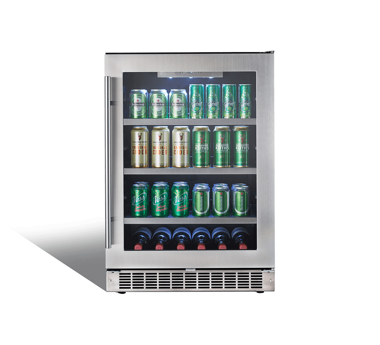 Conçu pour les amateurs de bière, de sodas ou de jus de fruits les plus exigeants, ce meuble est équipé pour contenir une grande quantité de boissons. Les étagères bien espacées laissent un espace pour le stockage du vin à la base de l’unité et la porte en verre trempé permet de garder votre abondance de brassins bien en vue.