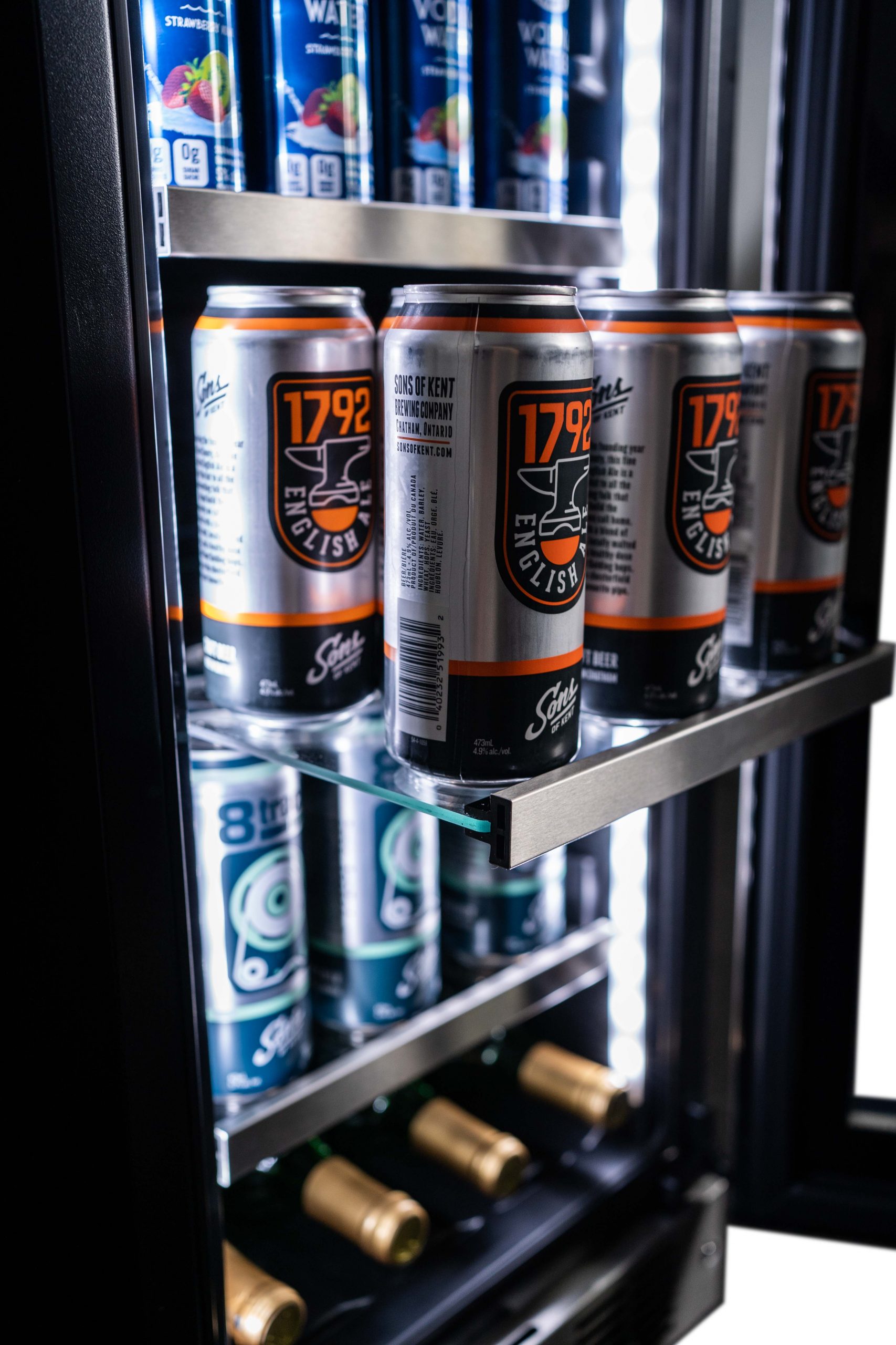 - Le centre de boissons intégré permet de stocker jusqu’à 7 bouteilles de vin et jusqu’à 66 canettes de 355 ml.