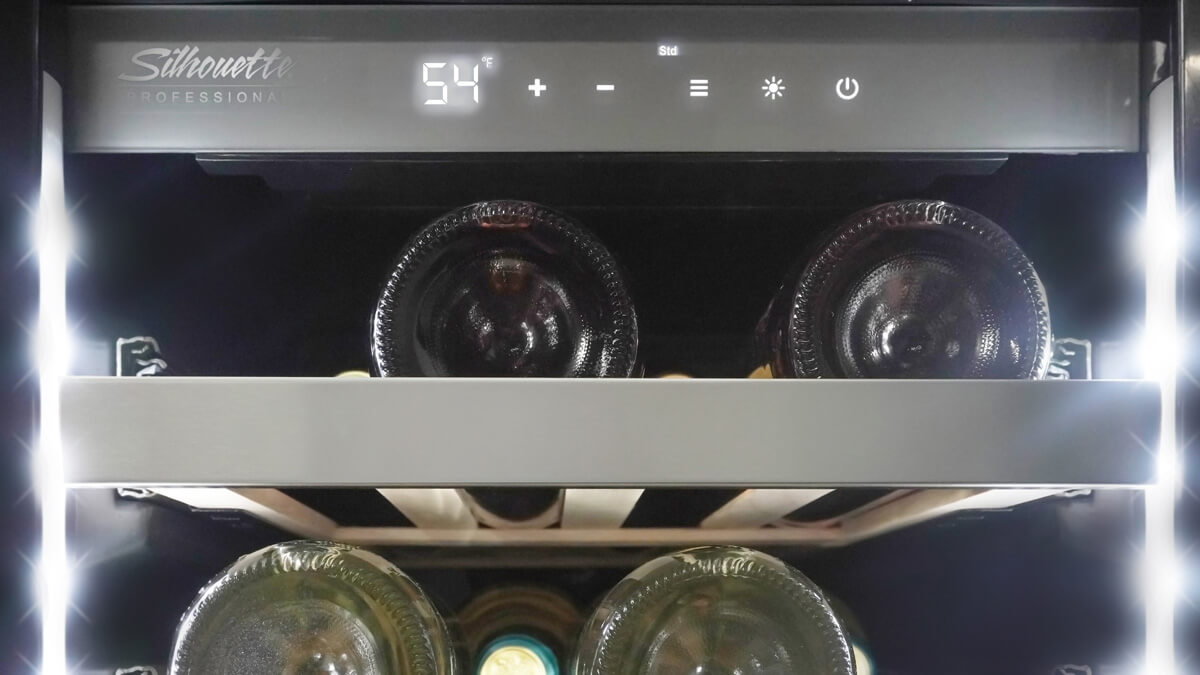 - La colonne à vin intégrée permet de stocker jusqu’à 28 bouteilles de vin.