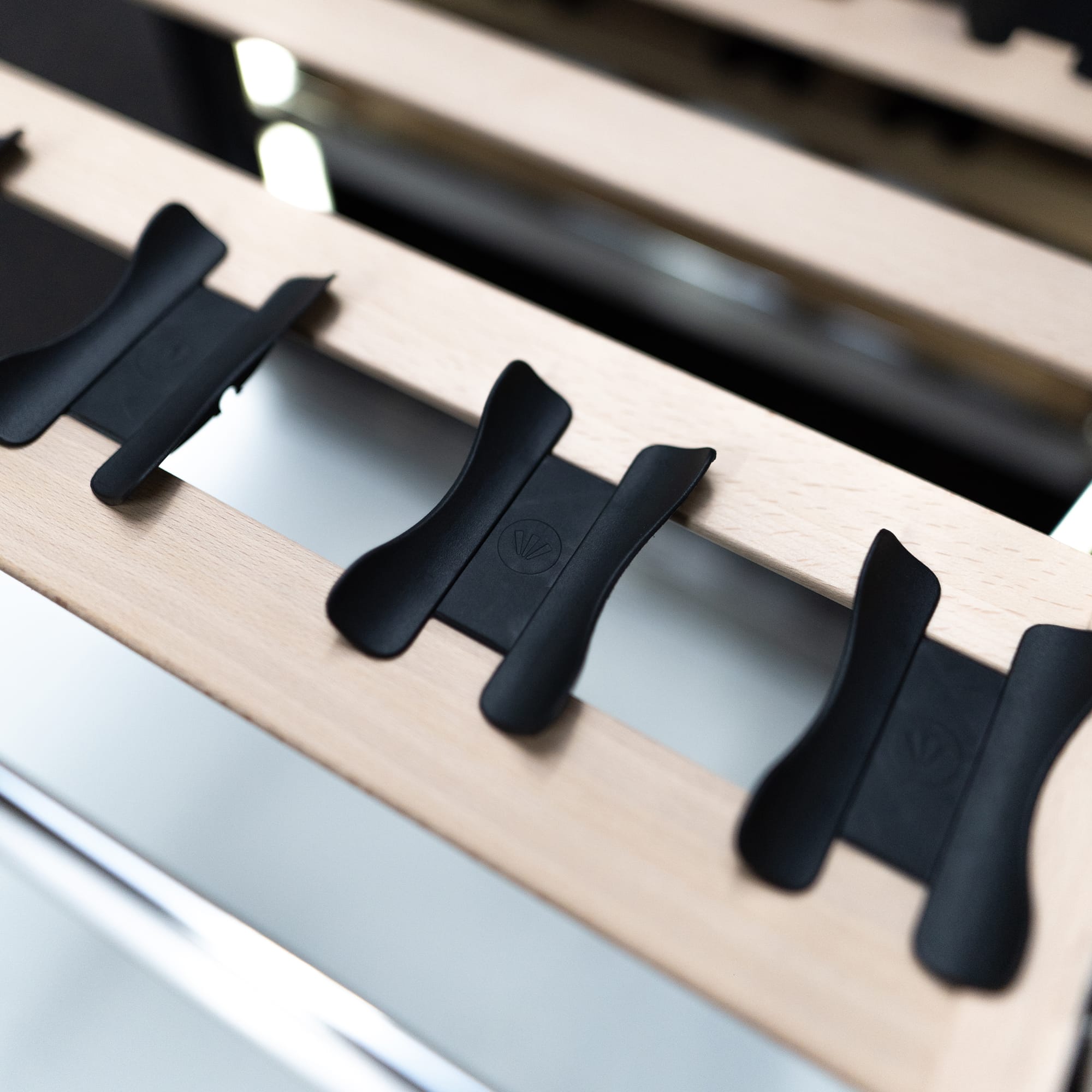Disposez facilement votre collection de vins sur nos porte-bouteilles en instance de brevet, qui s’adaptent à différentes tailles de bouteilles.
