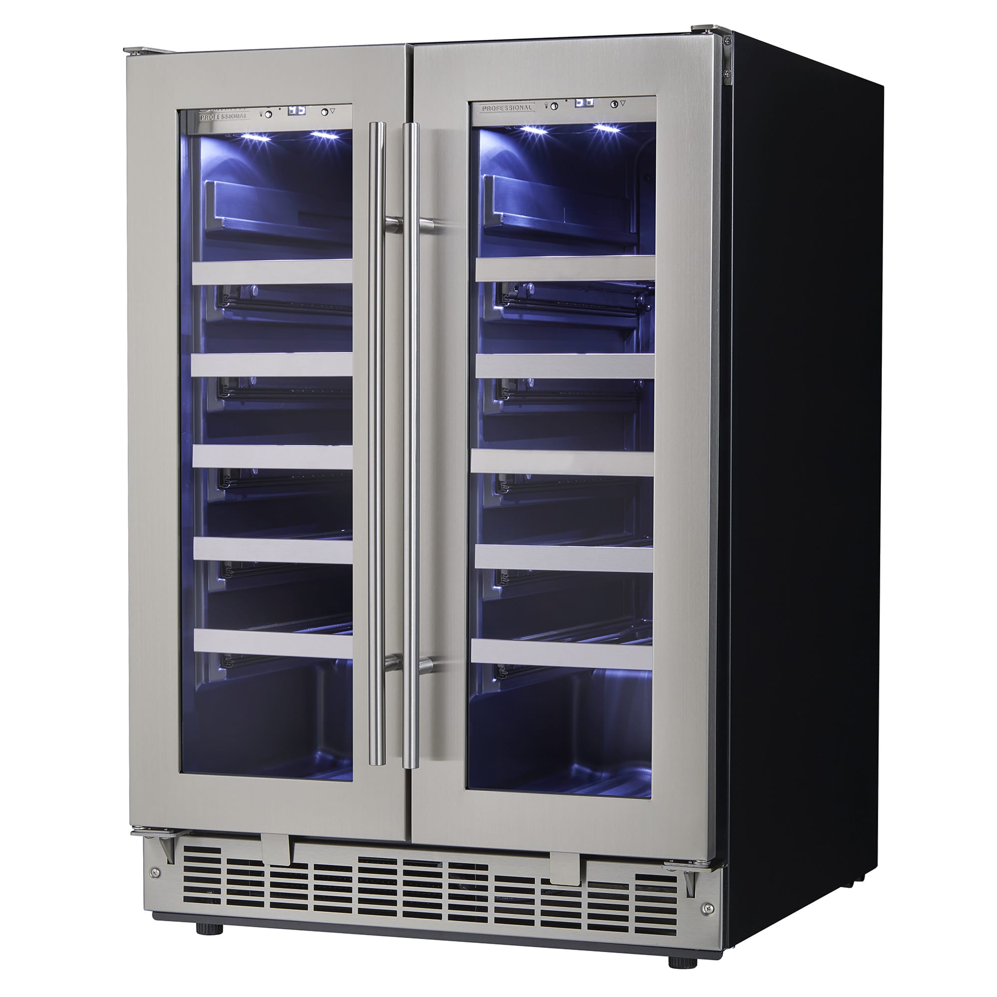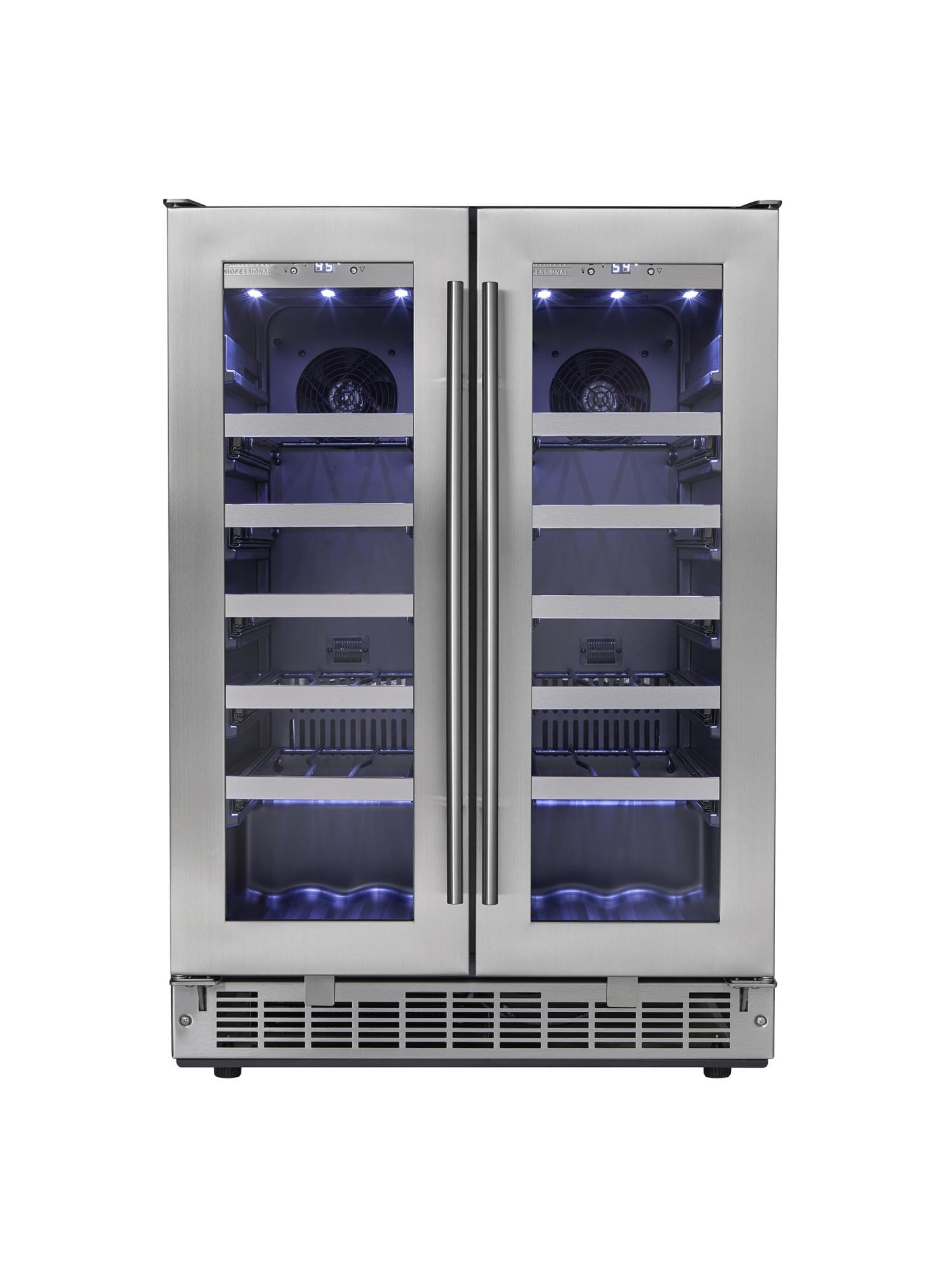 - French door design allows for two independently controlled temperature zones and will store up to 42 (750 ml) bottles of wine, 21 bottles in each zone. Precise digital thermostat with LED display can be set and monitored through the door