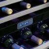 - The true, blue LED track lighting that illuminates the interior of this unit exquisitely displays your wine without any damaging heat. This feature can be turned on or off at your leisure, so your selection can be in the spotlight or more discreetly displayed.