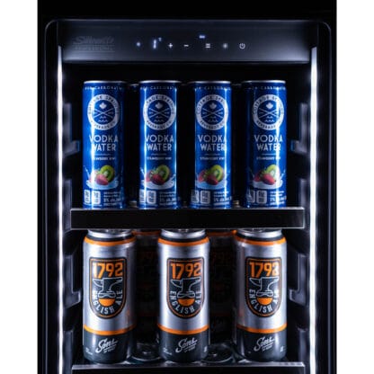 - Built-in beverage center stores up to 7 bottles of wine and up to 66 – 355mL cans