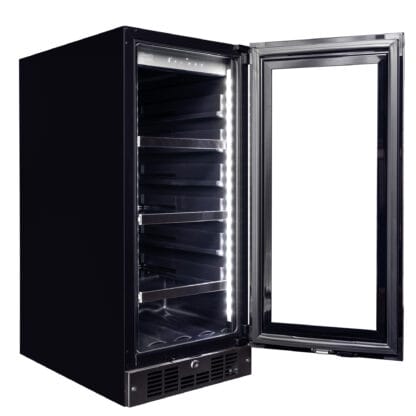 This is the sleek and slim beverage center that’s light on width but heavy on style. Tuck your favorite beverages away safely behind the glass door and fully extend the smooth shelving to effortlessly examine which one to quench your thirst with.