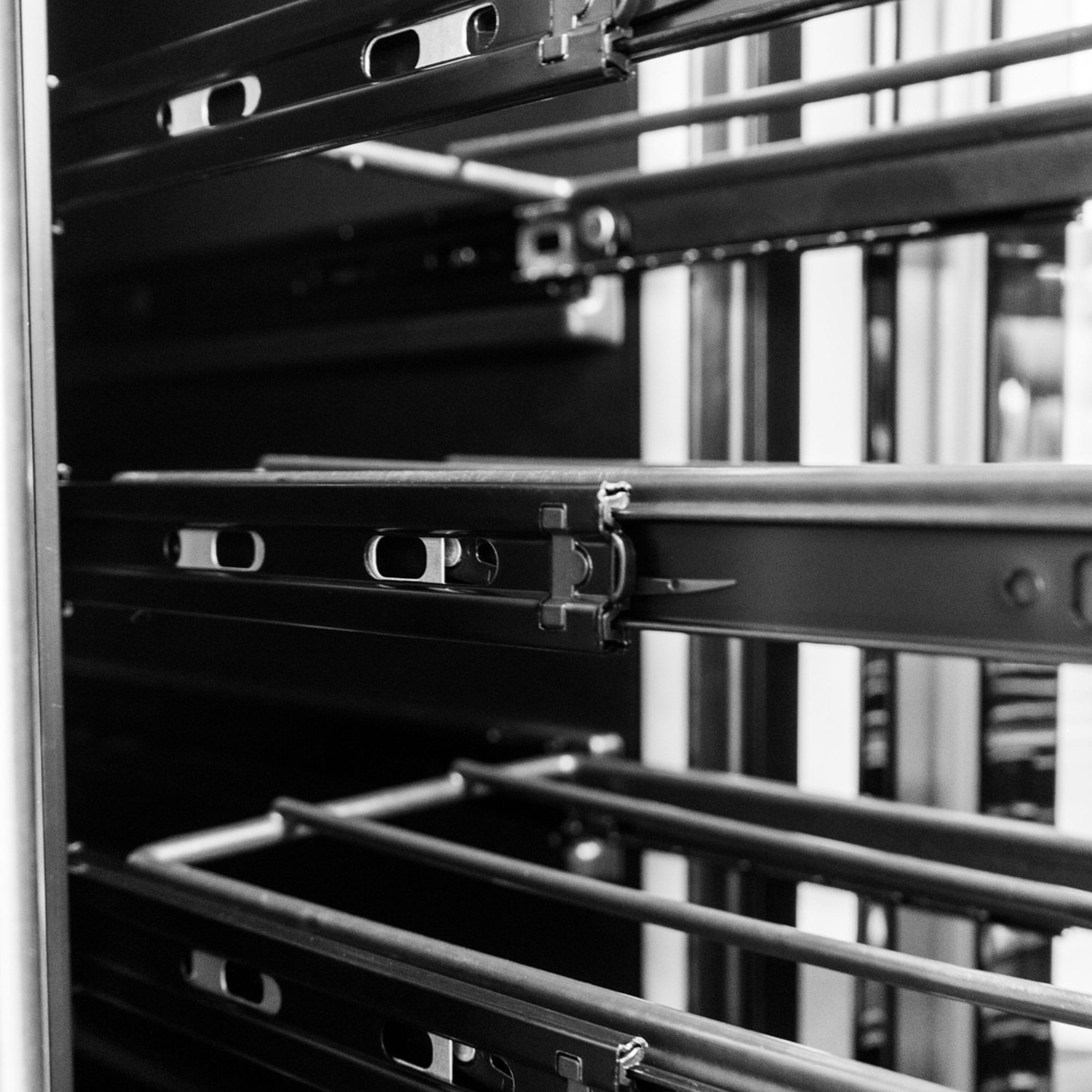 - Pro-glide: anti-vibration, full extension shelving for wine, 3 adjustable clear glass shelves for beverage