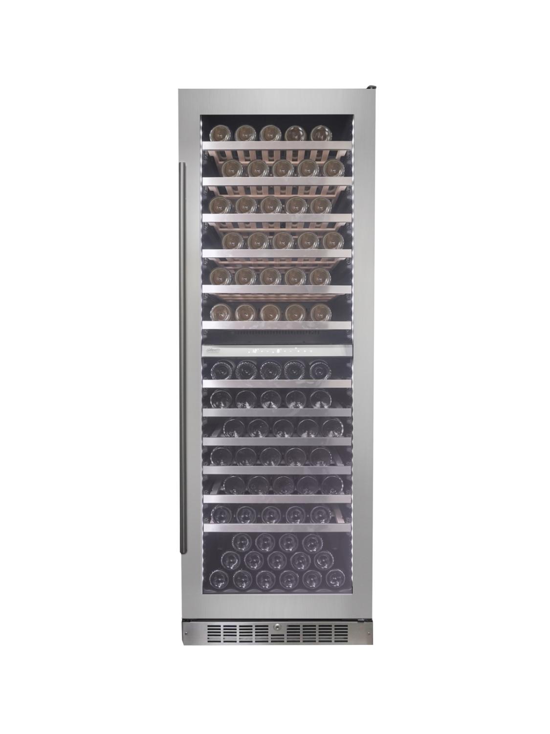 - Built-in wine column stores up to 129 bottles of wine in two separately controlled temperature zones