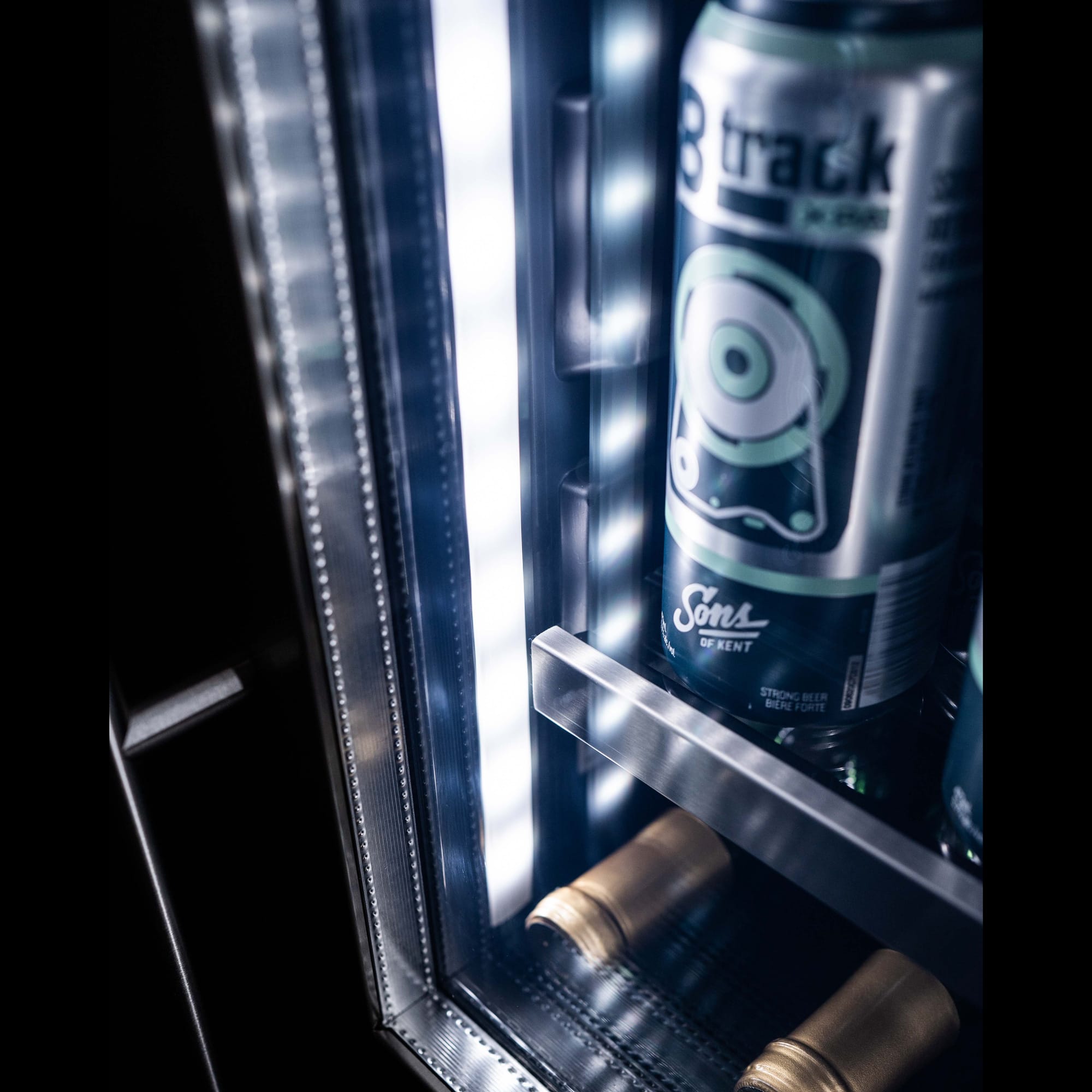 - Built-in beverage center stores up to 7 bottles of wine and up to 66 – 355mL cans