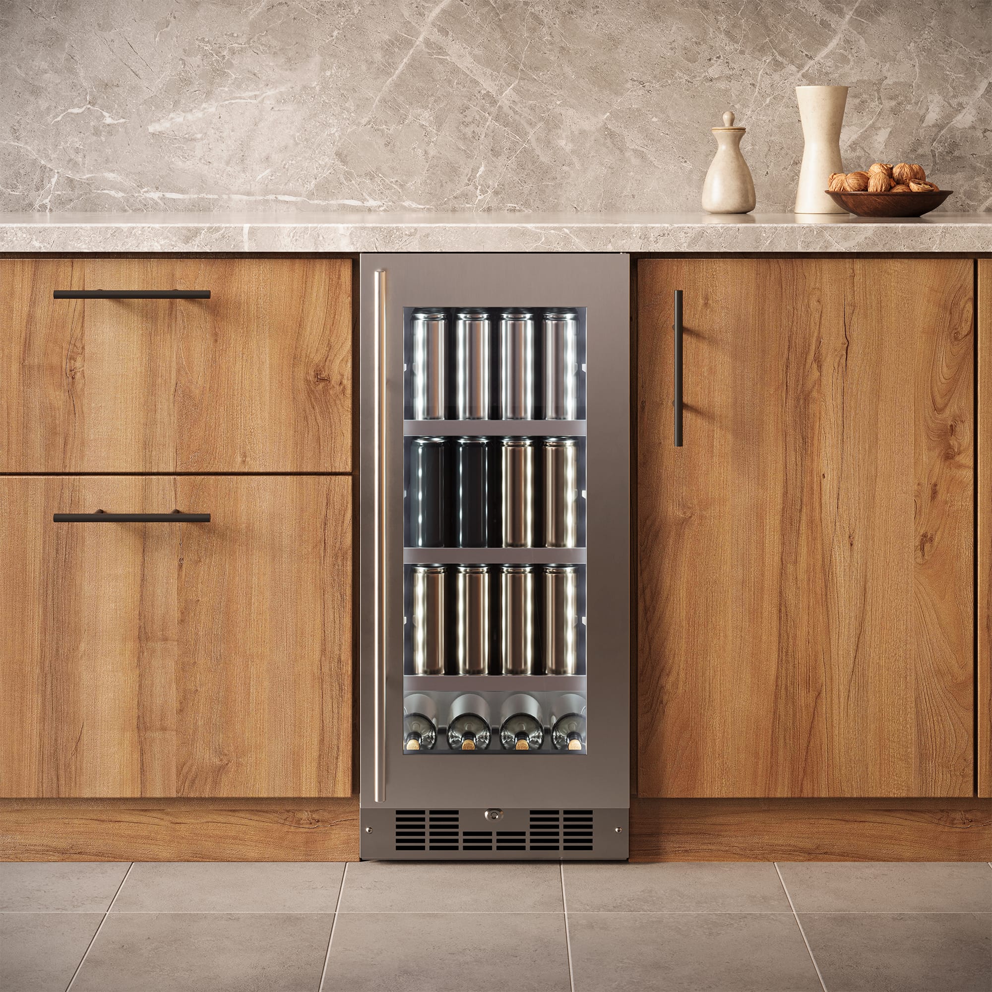 This is the sleek and slim beverage center that’s light on width but heavy on style. Tuck your favorite beverages away safely behind the glass door and fully extend the smooth shelving to effortlessly examine which one to quench your thirst with.