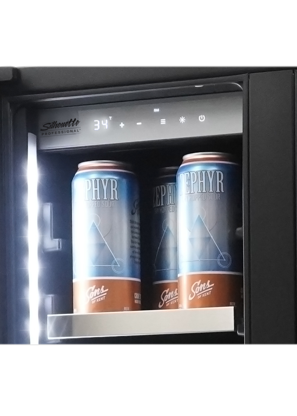 - Built-in under-counter design stores up to 61 beverage cans and 21 bottles of wine